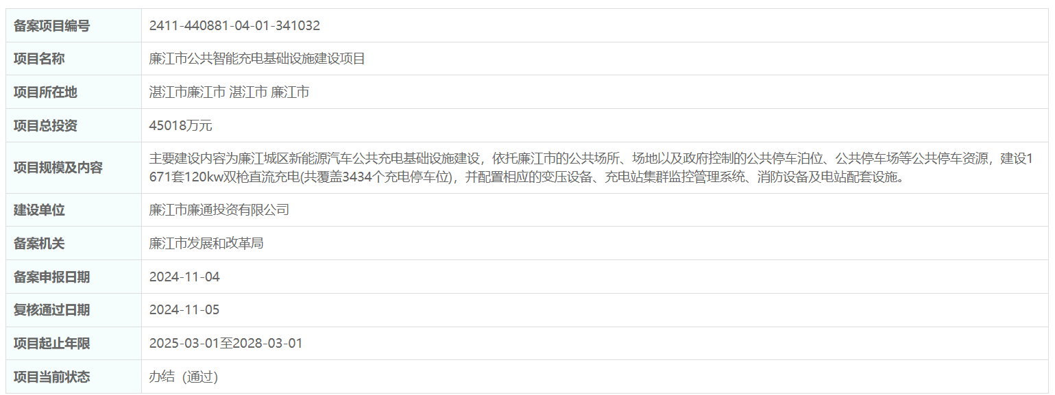 近日,廣東省廉江市公共智能充電基礎(chǔ)設(shè)施建設(shè)項(xiàng)目備案通過(guò)。